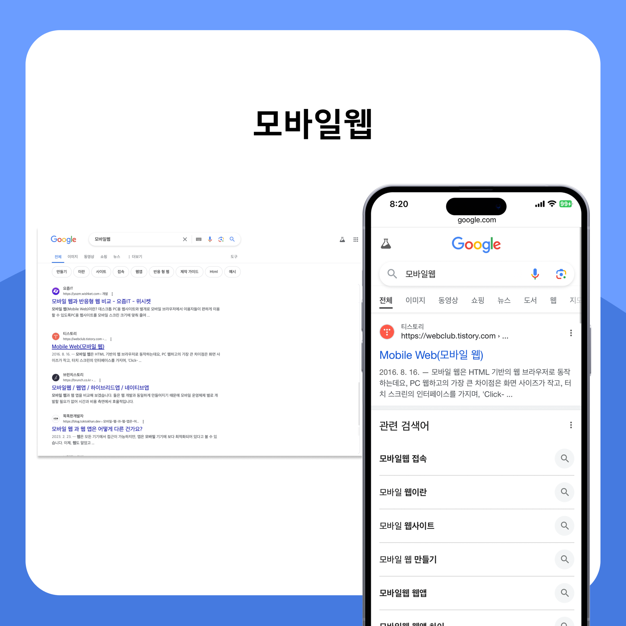 모바일 웹은 반응형 디자인이나 모바일 전용 디자인으로 개발