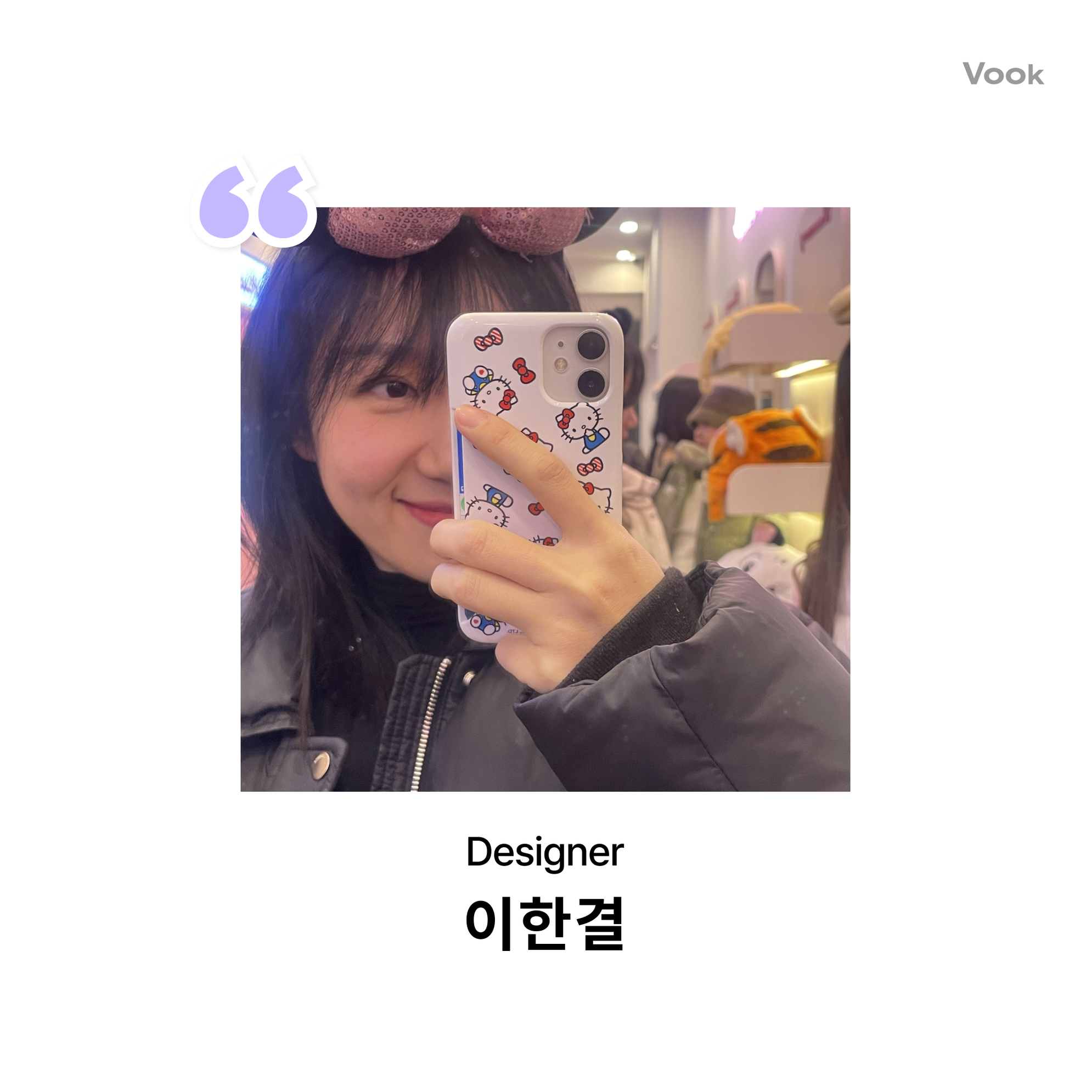 한결님은 저희 팀의 금손 디자이너로, vook 서비스의 UI/UX 디자인을 담당하고 계십니다.